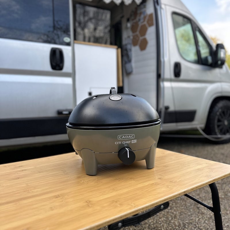 Naast zijn functionaliteit is de Citi Chef 40 ook een lust voor het oog met zijn stoere groene kleur. Hij past perfect bij onze outdoor stijl. Met de handige opbergtas is de BBQ na gebruik zo weer netjes opgeborgen in de camper, zonder veel ruimte in beslag te nemen.